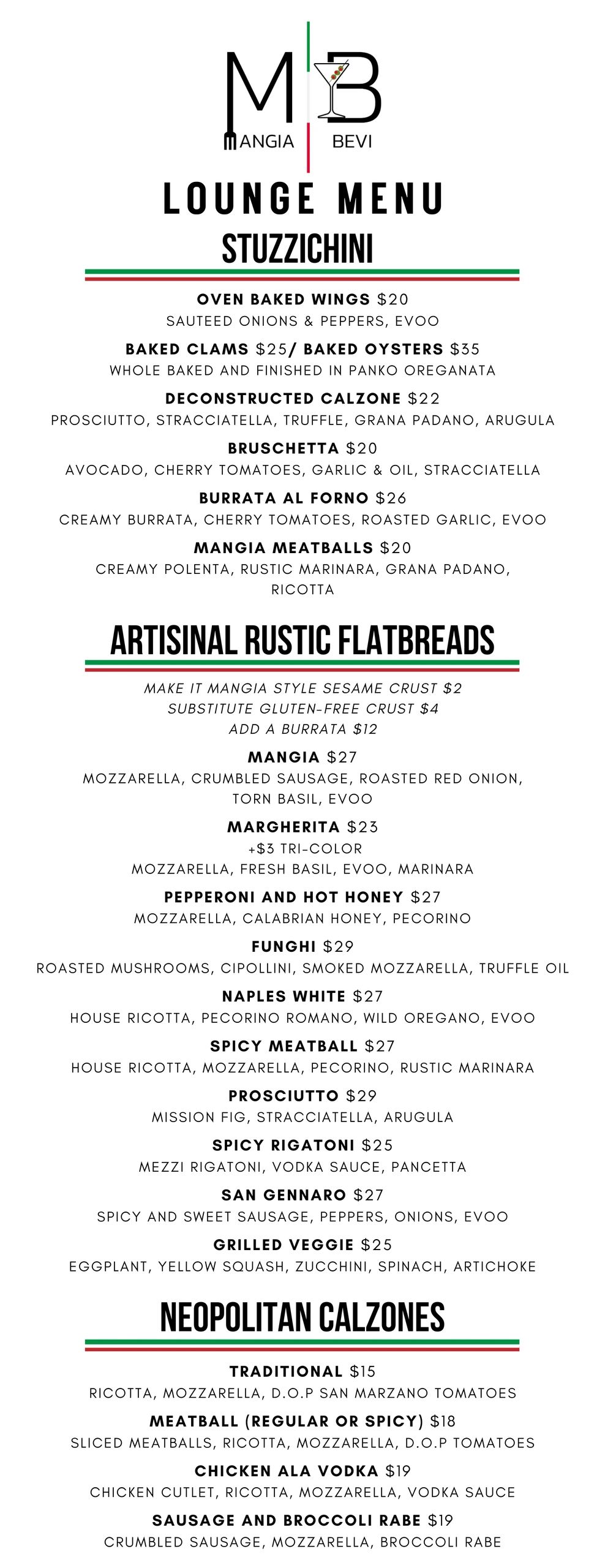 • Lounge Menu